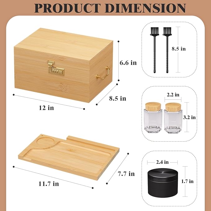 • 🌿 Premium All-in-One Organizer: This bamboo box with lid includes 2 soft brushes, 2 airtight glass jars, a metal grinder, and a removable tray — everything you need in one stylish Storage Box. Designed to fit your lifestyle, it’s perfect for organizing tools, accessories, or herbal essentials.