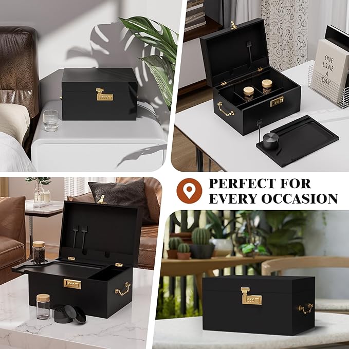 • 🔒 Safe & Private with Lock: Keep your belongings secure and discreet with our built-in combination lock. This stash box with lock ensures your contents are protected while offering peace of mind at home or on the go. It’s a must-have weed stash box for privacy-conscious users.