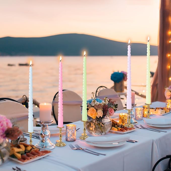 • Perfect for Any Occasion: Our candy taper candles are perfect for various occasions such as Christmas, Thanksgiving, Kawanza,Valentine's Day, weddings, candlelight dinners, holidays,restaurants, churches,special events, or parties and so on Dripless and Unscented Candles: Our multi-color taper candle are dripless Unscented and smokeless, ensuring a clean burn without any mess. Notice: Even dripless or drip resistant candles may drip! Dripless candles require ideal burning conditions in order to avoid dripping, such as horizontal tabletop, windless space.