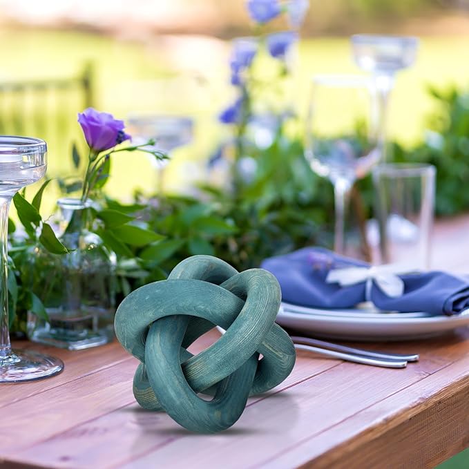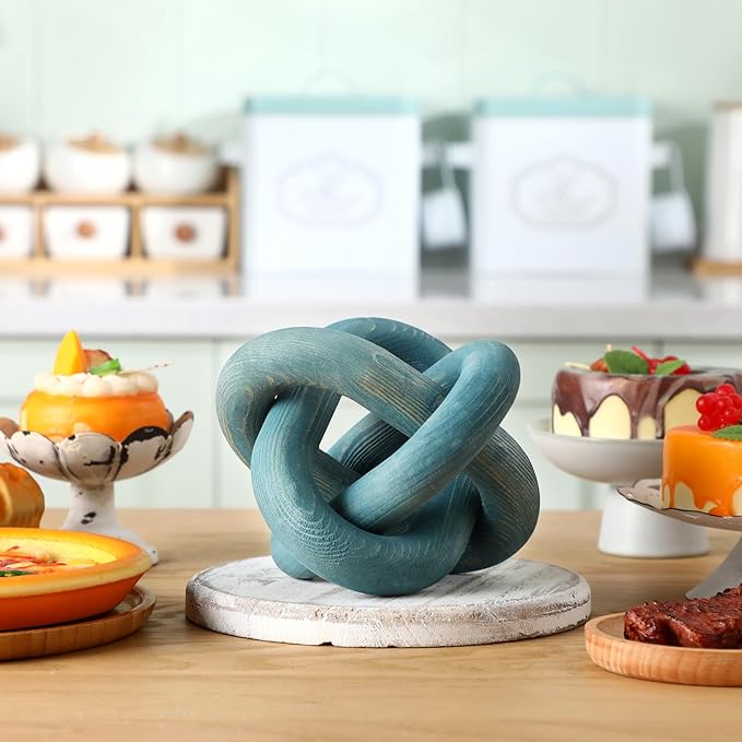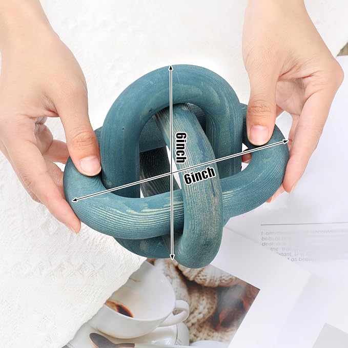 3 Link Wood Knot Decor - Hand Carved Coffee Table Decoration, Boho Chain Link Decor, Modern Shelf, Rustic Objects for Home Living Room Bedroom(Blue)