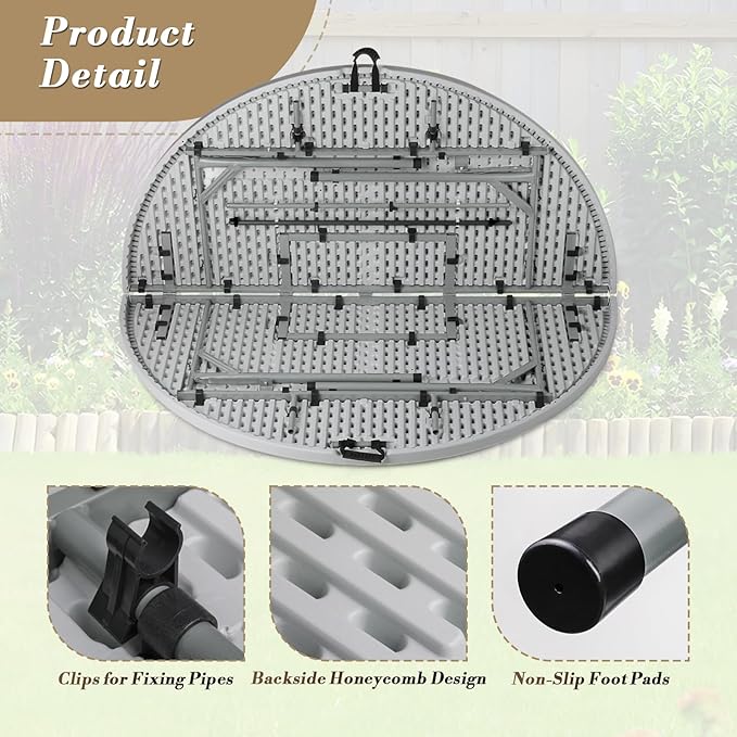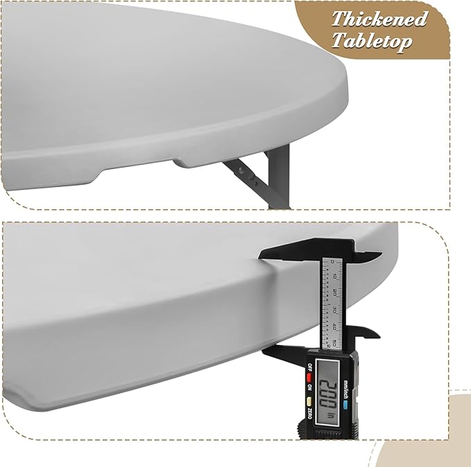 • User-Friendly and Floor-Safe: The smooth table edges of this round folding table help prevent injuries, and the plastic caps on each leg protect your floors from scratches and keep the table from sliding.