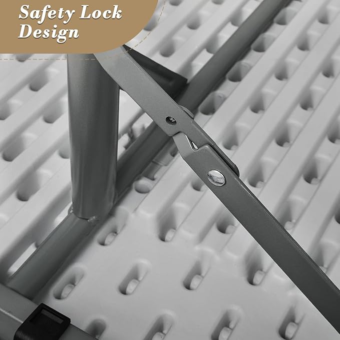 • Easy-to-Clean: This plastic folding table is stain-resistant, so you can easily wipe it down with a damp cloth after barbecues, parties, or get-togethers.
