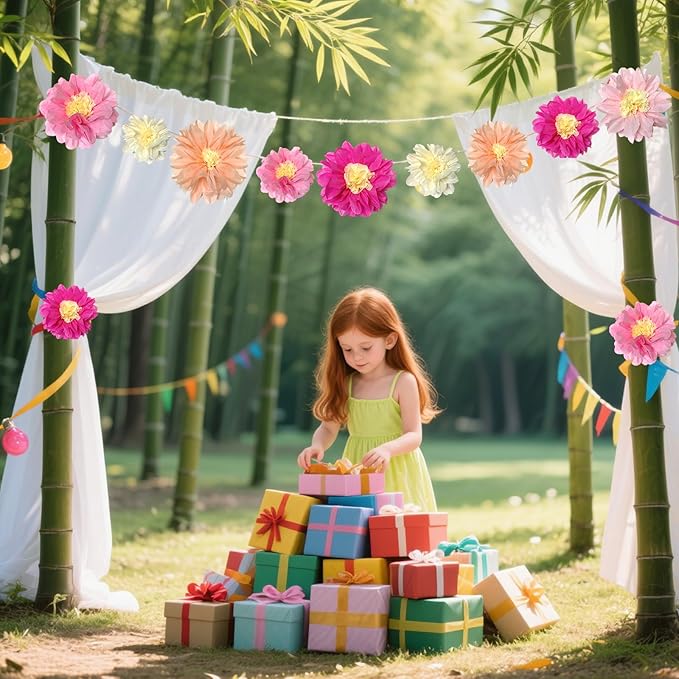 • Tissue Paper Pompoms: Total 22 pcs paper flowers, 5 assorted colors and 4 sizes.