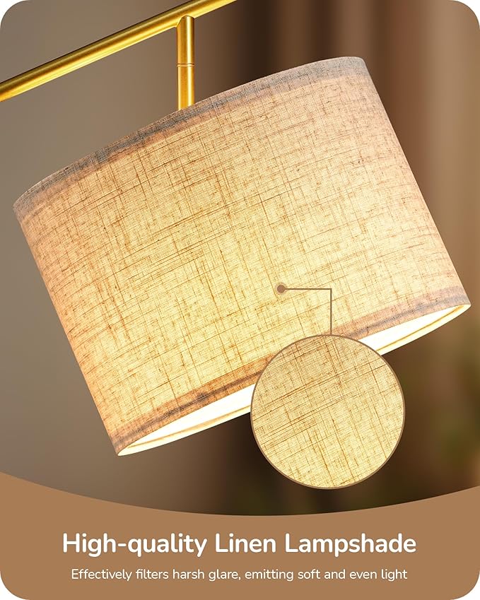 EDISHINE 64.7" Modern Minimalist Floor Lamps for Living Room with 3 Color Temperatures Bulb & Adjustable Linen Shade, Foot Pedal Switch, Tall Standing Lamp for Bedroom Office, Gold