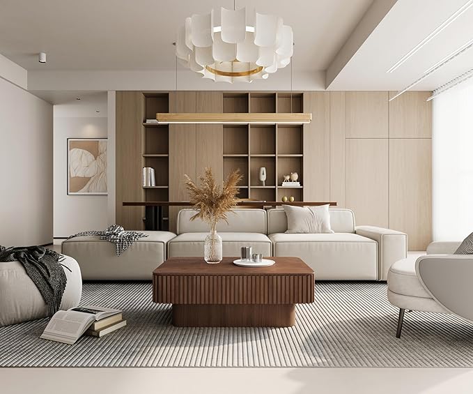 38.6'' Lift Top Fluted Coffee Table with Hidden Compartment, Modern Rectangular Wooden Center Table Cocktail Tea Table with Storage and Adjustable Height for Living Room Apartment, Walnut