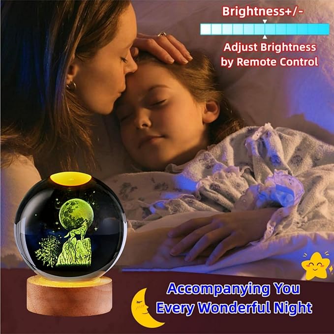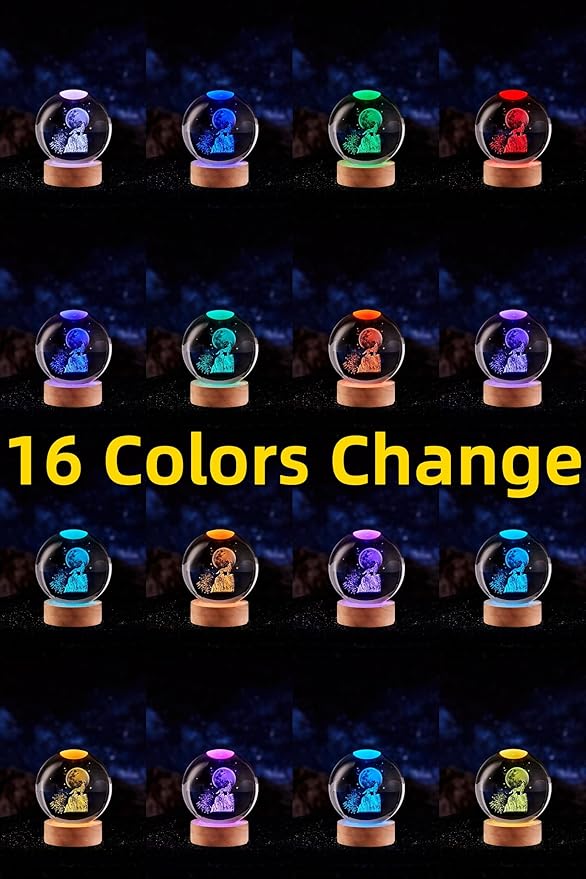 • ▶【16 Colors Change & Multiple Lighting Modes】Our 3D wolf Crystal Ball Lamp have 16 colors and 4 modes. You can use the remote control to choose the color of your favorite lights and adjust the intensity of the lights.Flash, strobe, fade and smooth four modes,can also always light a color, soft and not glare, protect your eyes.