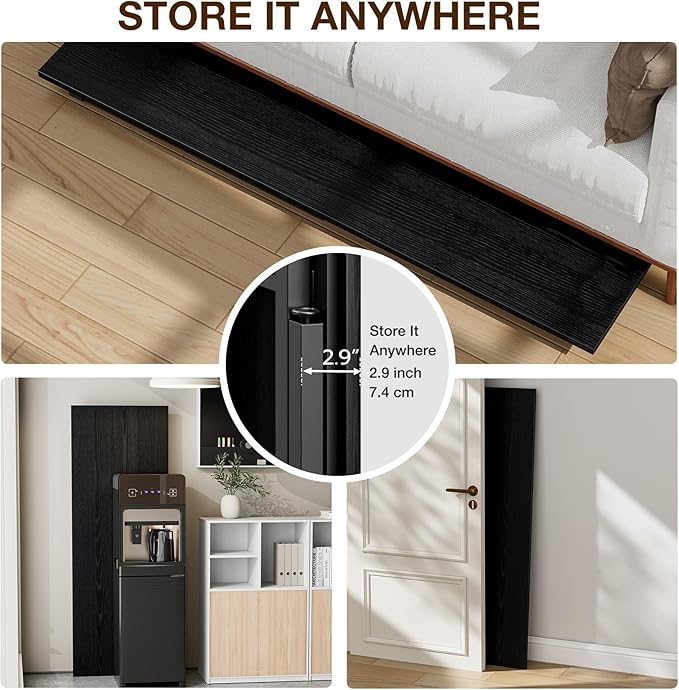 • 👍𝗖𝗢𝗠𝗣𝗔𝗖𝗧 𝗔𝗡𝗗 𝗘𝗔𝗦𝗬 𝗧𝗢 𝗦𝗧𝗢𝗥𝗘 — When folded, this mini desk measures just 55.1" L x 19.6" W x 2.9" H. The small folding table design allows it to fit seamlessly behind doors, under beds, beside fridges, or in any other tight space, making it a great small computer desk for small spaces while keeping your room organized.