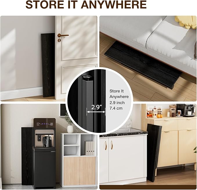• 👍𝗖𝗢𝗠𝗣𝗔𝗖𝗧 𝗔𝗡𝗗 𝗘𝗔𝗦𝗬 𝗧𝗢 𝗦𝗧𝗢𝗥𝗘 — When folded, this mini desk measures just 35.8" L x 15.7" W x 2.9" H. The small folding table design allows it to fit seamlessly behind doors, under beds, beside fridges, or in any other tight space, making it a great small computer desk for small spaces while keeping your room organized.