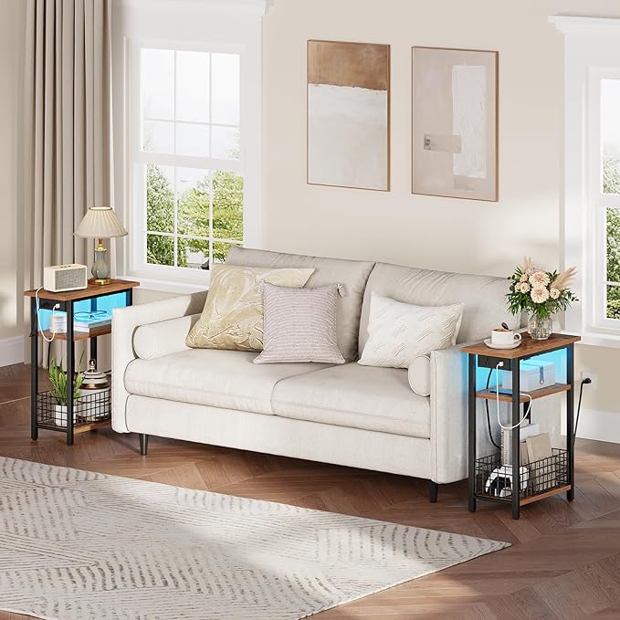 • 3-Tier Skinny Side Table With Open Storage: This end table's open shelves keep daily essentials accessible with a metal mesh basket for snacks, magazines, and remotes, saving your space from clutter. It also lets you display decor items like plants or photo frames