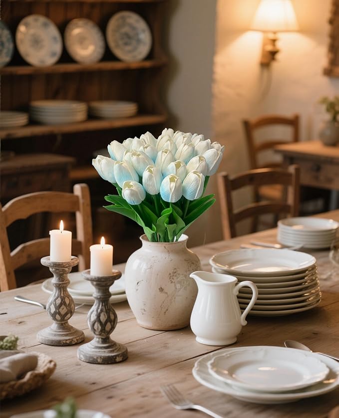 • EASY CARE: Compared with fresh tulips, our artificial tulips retain the beauty of fresh flowers and are easier to care for and durable. If there is any dust on the tulips, please gently wipe it with a damp cloth