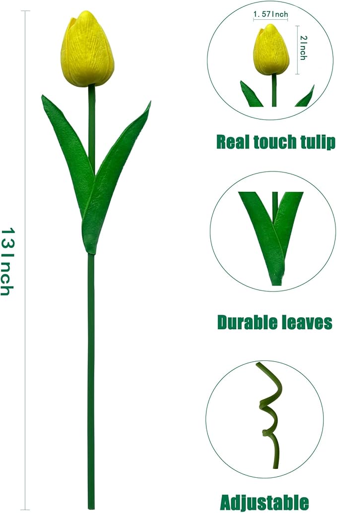 • MATERIAL: Our artificial tulips are made of plastic and polyurethane, which has a soft texture and a realistic touch. Inside the stem is durable wire that can be easily bent and cut to fit different vases as needed