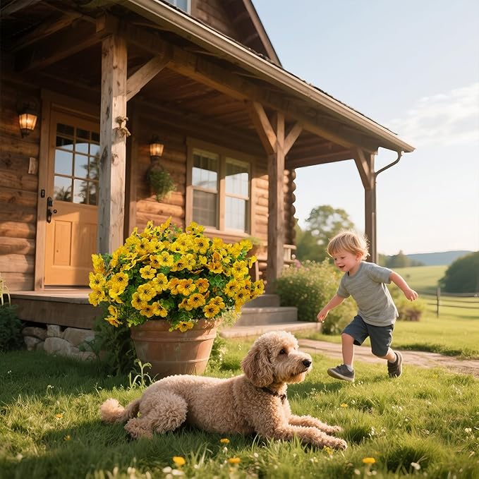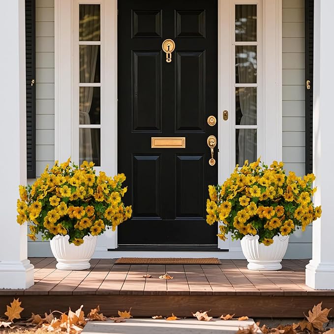 • Perfect for Outdoor/Indoor - Plastic flowers are ideal for outdoor porches,walkway,terraces windox box,front yard,pots,hanging planters,gardens,landscape,windowsills,allow you have beautiful color all year around.yard decorations outdoor Also suit for birthdays,weddings,memorial place or grave,they can live anywhere and have withstood heavy rain storms and winds,uv resistant artificial outdoor flowers