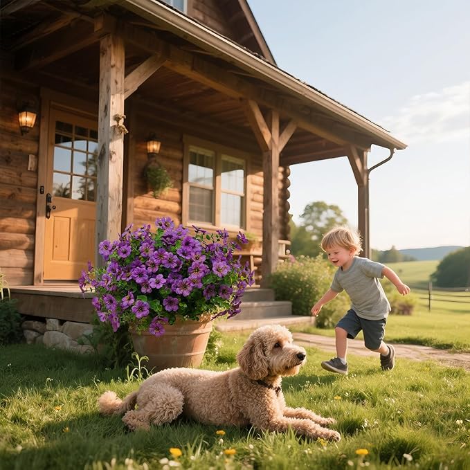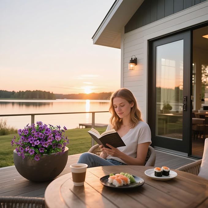 • Perfect for Outdoor/Indoor - Plastic flowers are ideal for outdoor porches,walkway,terraces windox box,front yard,pots,hanging planters,gardens,landscape,windowsills,allow you have beautiful color all year around.Also suit for birthdays,weddings,memorial place or grave,they can live anywhere and have withstood heavy rain storms and winds,yard decorations outdoor,uv resistant artificial outdoor flowers