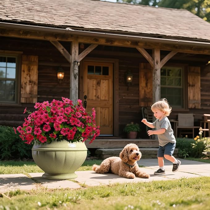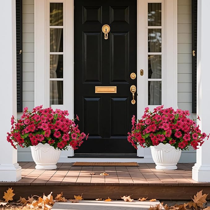 • Perfect for Outdoor/Indoor - Plastic flowers are ideal for outdoor porches,walkway,terraces windox box,front yard,pots,hanging planters,gardens,landscape,windowsills,allow you have beautiful color all year around.Also suit for birthdays,weddings,memorial place or grave,they can live anywhere and have withstood heavy rain storms and winds,outdoor faux plants