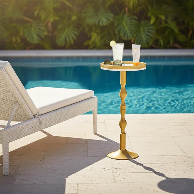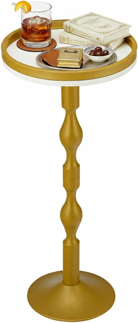 Small Round Drink Table,Pedestal Tables,Small Round Side Table for Narrow Spaces,End Table for Living Room, Bedroom, Bathroom,Balcony (White Gold)