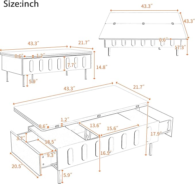• Hidden Storage Space: Features a hidden compartment under the lift top and 2 drawers to stow away remote controls, cards, chargers, office supplies, blankets and more, effortlessly keeping your space out of clutter.