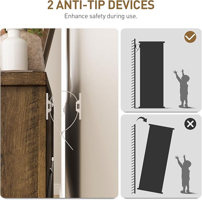 • Sturdy Material: Crafted from high-quality MDF, this rustic console table is built to last. Equipped with 2 anti-tip devices to prevent tipping and enhance stability, and 8 EVA non-slip pads to protect floors from scratches when moving the table