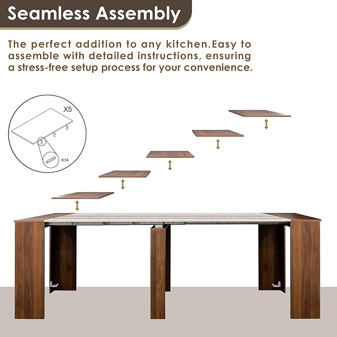 • Ultimate Flexibility: This dining table adjusts from 20" to 118", accommodating from 2 to 12 people, perfect for any occasion and space.