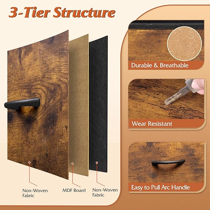 • 【✨ Durable Quality Material】The drawer of this 3 drawer dresser surface is composed of three layers of high-quality fiberboard and breathable non-woven fabric, the woodtop is made of P2 grade artificial wood, scratch resistant and easy to clean, the material process and safety are strictly tested by EPA&SGS, health and environmental protection, excellent quality for you and your family to create a peaceful life!