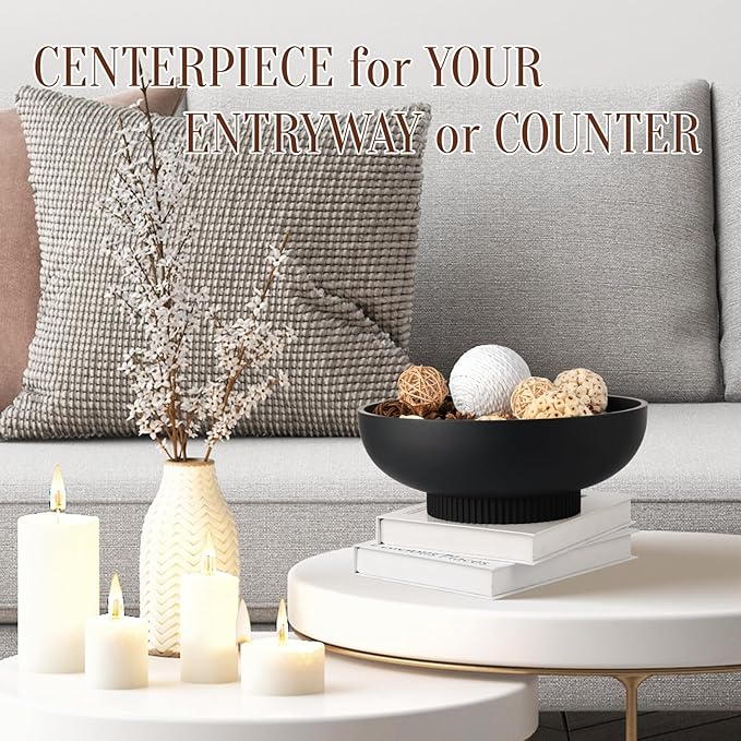 Large Resin Pedestal Decorative Bowl - Modern Handicraft Bowls for Home Decor - Fruit Bowl for Kitchen Counter - Key Bowl for Entryway Table,Matte Black