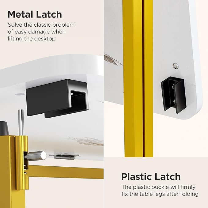 • 【Folding Table】Thanks to the convenient design of the metal spring lock, the table can be easily folded with one pull and one buckle, bidding farewell to the classic problem of easy damage when lifting the desktop; In addition, the table legs make a universal design, which can be installed on either side without distinguishing left or right leg.