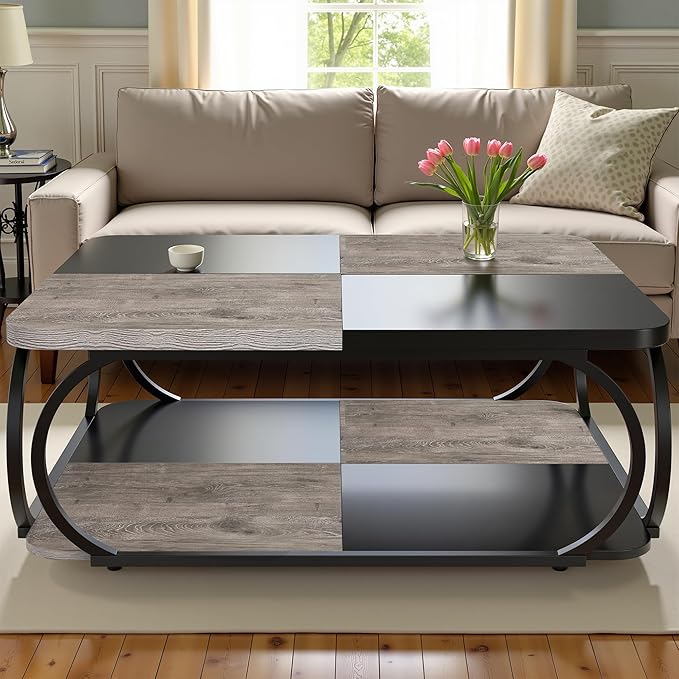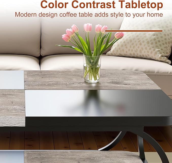 • Stable & Durable: This coffee table features a thick engineered wood tabletop and a sturdy metal base. The sturdy design ensures long-term durability, making it the reliable core of your home.