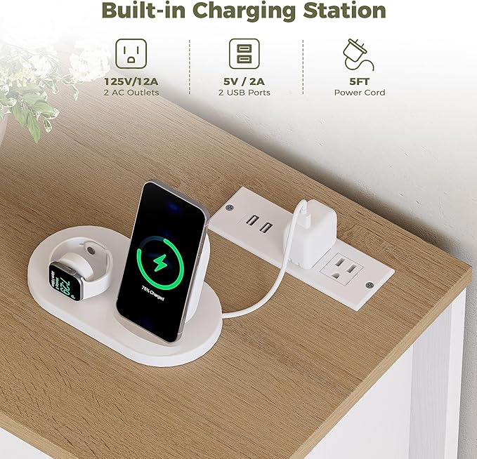 • With Convenient Power Outlet: Equipped with a charging station including 2 AC outlets and 2 USB ports, our entryway storage allows easy charging for smartphones, tablets, and small kitchen appliances. The plug cord is 5 feet long and there are no restrictions on where it can be placed