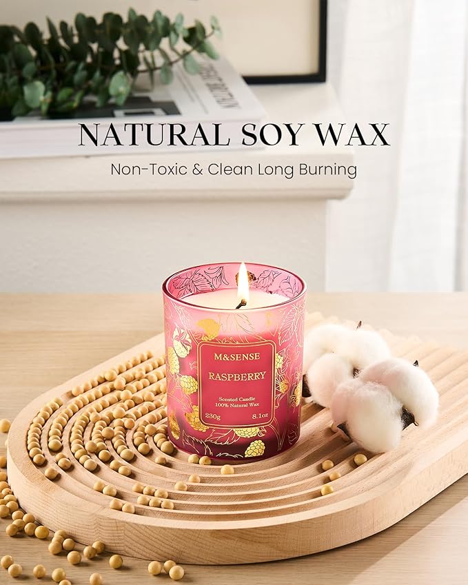 M&SENSE Raspberry Scented Soy Candles, 8.1oz 42-Hour Burn Time Vegan No Toxin, Aromatherapy Relaxing Refreshing Candles for Stress Relief, Housewarming Gift for Men Women