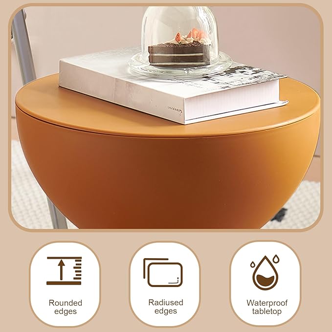 Mini Circle Side Table, Small Modern Bowl-Shaped Coffee Table, Sofa End Table Nightstand, Modern Bedside Home Decor for Living Room, Bedroom,Living Room (Orange)