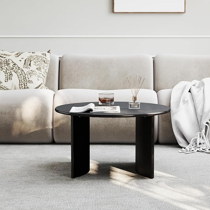 • [Modern Coffee Table] This coffee table boasts a spacious round top, measuring 31.5 inches in diameter, perfect for keeping your living room supplies organized and your daily essentials close at hand.