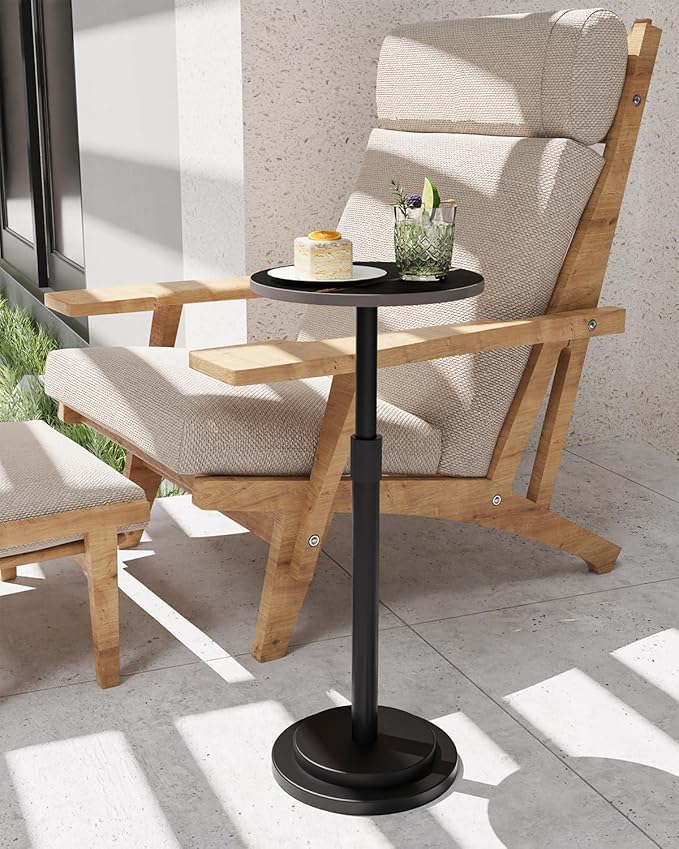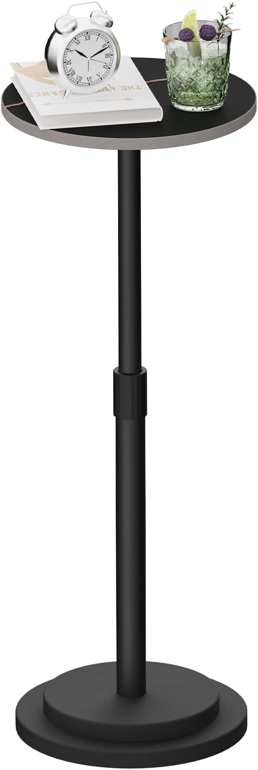 Height Adjustable Drink Table, Vintage Round Indoor Metal Plant Stand, for Small Spaces, Living Room, Bedroom, Cocktail, 1 Pack, Black, GBZ001CB-1