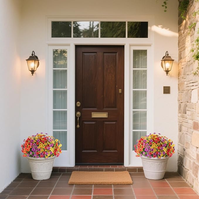• Realistic Outdoors Plants: These outdoor fake spring summer flowers are real looking, these artificial branches exude a stylish and authentic appearance, rendering them ideal decorations for your outside garden, yard, patio, balcony, front door, porch, flowerbed, hanging planters for outdoor plants, pot and window box, both indoors and outdoors.