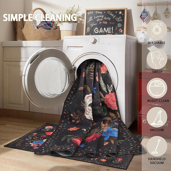 • Easy to clean: Keep this washable rug black looking fresh with a simple vacuum, broom, or wipe down to remove dust and crumbs from the fibers.