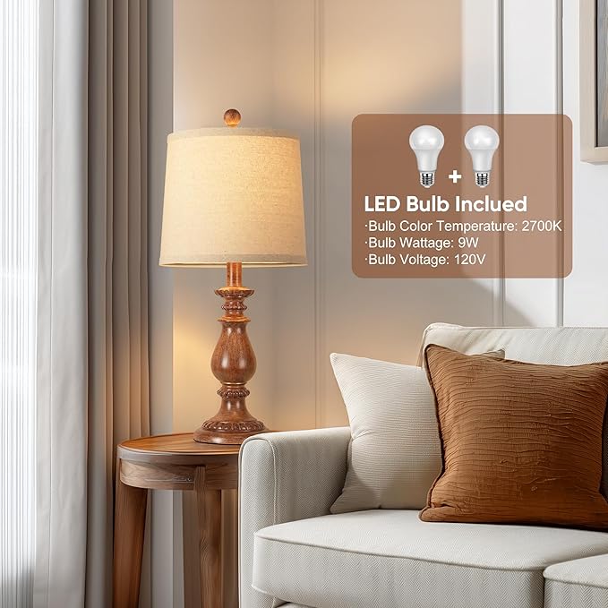 • Dual Warm & Eye-Friendly Lighting: Our vintage lamps include two energy-efficient 9W 2700K bulbs. The linen shades diffuse a uniform, warm light lamp glow, reducing eye strain and photophobia to create a soothing ambiance. These long-lasting bulbs make this set of 2 lamps an enduring companion for both home decor and daily use, ideal as bedside lamps.