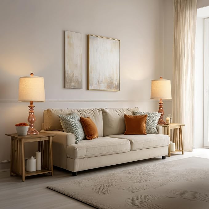 • Compact Space-Saving Design: Measuring 22'' H x 10'' W, this small table lamp duo fits seamlessly into tight spaces. Enjoy inviting illumination that enhances the atmosphere without cluttering your bedroom lamp area, living room corners, nursery, hallway, or entryway. It functions perfectly as a lamp for living room or side table lamp where space is premium.