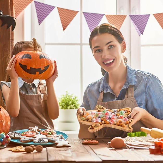 • Versatile Wooden Tray: the Halloween wooden plates can be applied as a serving platter to hold various things, like candies, nuts, fruits, cheese, snacks, sausages, peanuts, cupcakes, charcuterie, appetizers and more, and they can also be applied a bathroom tray to organize candles, perfume, keys and other small items