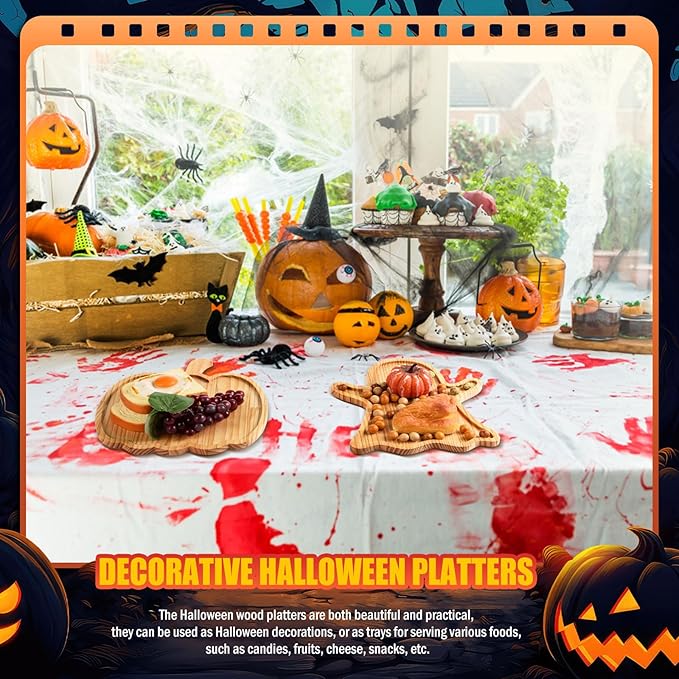 • Halloween Serving Platters: you will get 1 set of Halloween wooden serving platters, containing a pumpkin shape and a ghost-shaped wood tray, the different Halloween-shaped wooden platters can meet your needs of Halloween decoration or Halloween table setup