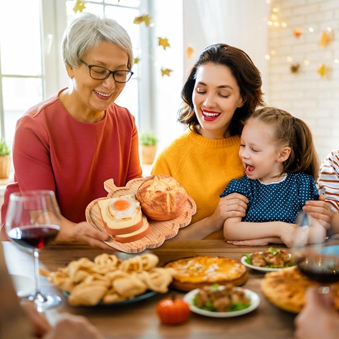 • Versatile Wooden Tray: the wooden Thanksgiving plates can be applied as a serving platter to hold various things, like candies, nuts, fruits, cheese, snacks, sausages, peanuts, cupcakes, charcuterie, appetizers and more, and they can also be applied a bathroom tray to organize candles, perfume, keys and other small items