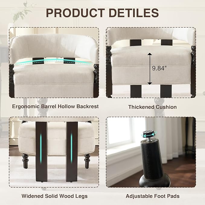 LOULENS Barrel Accent Chair, Vintage Chenille Upholstered Lounge Chair with Solid Wood Legs, Comfy Leisure Side Armchair for Living Room, Bedroom, Reading Nook, Corner, Beige