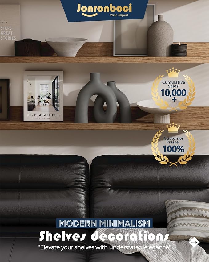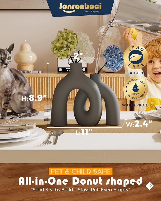 Hug Donut Decorative Vase Set - Dark Gray Modern Minimalism Industrial Style Vases Home Decor, Matte Ceramic Decorations for Living Room Shelf, Bookshelf Mantle Entryway Table or Console Décor(Gray)