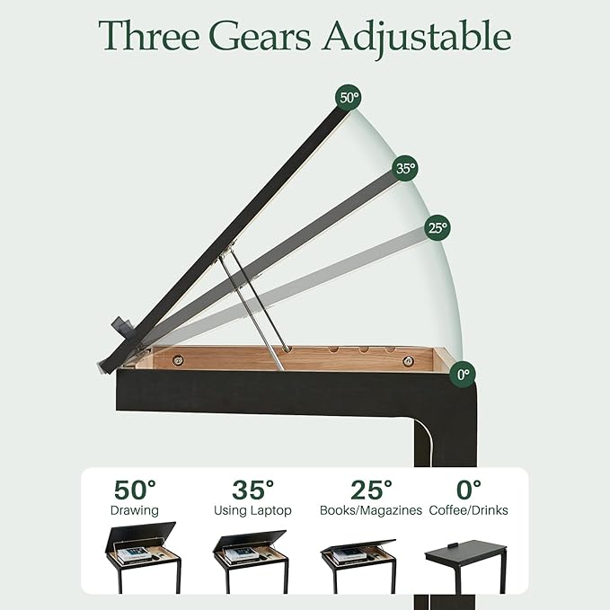 • Multi Purpose Adjustable Endtable: Open shelf displays bedtime books, decorative vases. Desktop holds late-night sofa snacks or morning coffee. Lift lid for hidden tablet/phone storage. Your essentials organized day to night, always within reach