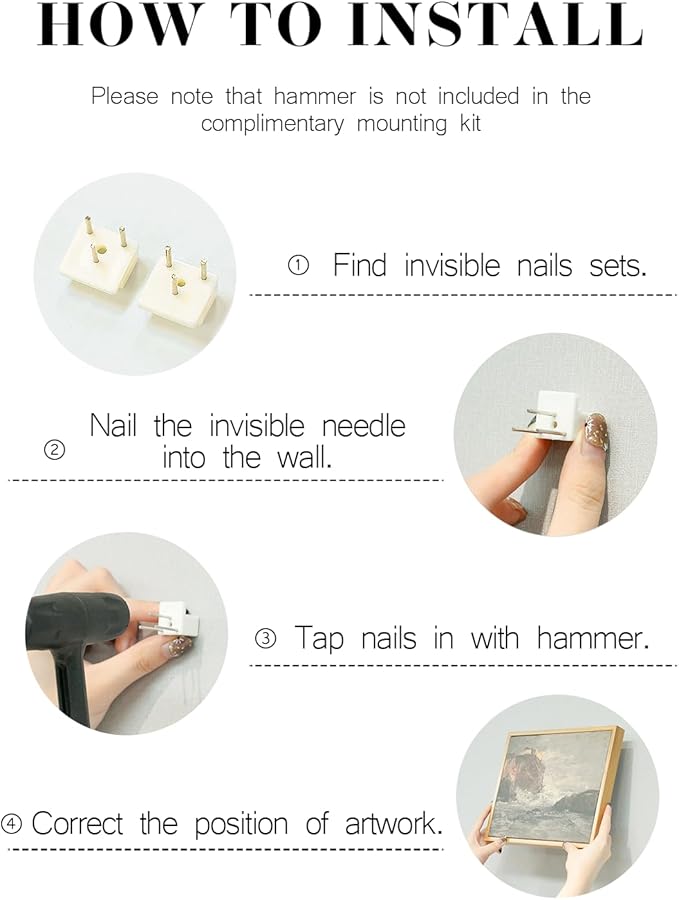 • Ready To Hang: This framed canvas art wall decor measures 12x16 inches, comes with 2 hooks which makes it easy to hang. Please read the installation instruction image before nailing the hook on your wall. (This item is handmade, so please allow the size error to be about 0.2 inches)