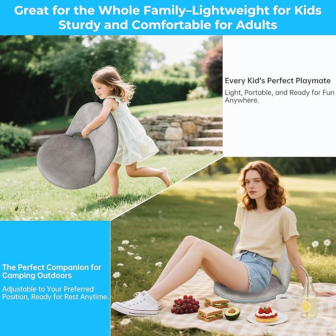 • 【Multipurpose Flexible Portable Seat】 Perfect as a floor chair for kids and adults! Ideal for living rooms, bedrooms, beach outings, meditation sessions, gaming marathons, nursing moms, or classroom activities. Designed with a waterproof base, it stands up to indoor and outdoor use from grassy parks to sandy beaches.