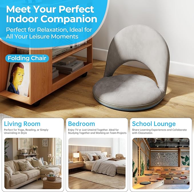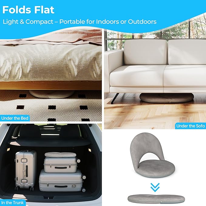 • 【Precision 5-Position Ergonomic Support】 Seamlessly lock into 5 tailored angles (90° to 180°) with our reinforced steel frame. The lumbar-arched velvet backrest actively supports your spine's natural curve during extended meditation or gaming sessions, while plush padding cushions hips and thighs. Designed for lasting comfort on hardwood floors, carpets, or beach mats.
