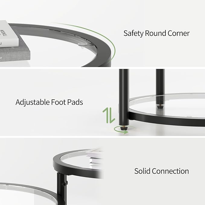 • 【Tough Glass & Strong Frame】Enjoy a sleek circle coffee table with tempered glass tops—heat, scratch, and shatter-resistant, plus easy to clean. The thickened metal frame of the coffee table round stays wobble‑free and firmly stable, built to support heavy loads with ease. Crafted to serve you day after day.