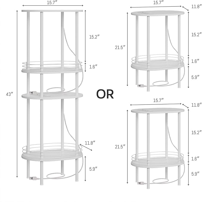 • [FOR SMALL SPACES] Standing at 11.8"D x 15.7"W x 21.5"H, this end table takes up little floor space while serving .This two-tier side tables with top/bottom shelf for extra storage has ample space for books, tablets, remote controls, snacks and drinks