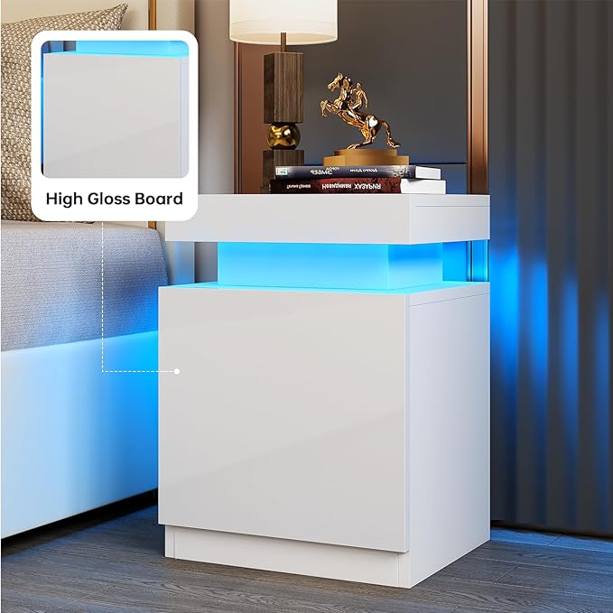oneinmil LED Nightstands Set of 2, Night Stand with Storage Cabinet for Bedroom, Bedside Table with LED Lights, Modern End Side Table, White