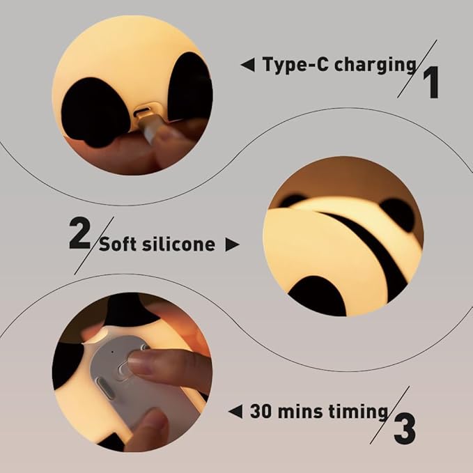 • [Rechargeable & Portable Convenience‌]Powered by a ‌Type-C USB cable‌, this ‌rechargeable panda night light‌ . Touch/click control makes it easy to turn on/off, while its compact size is ideal for travel or bedside use.