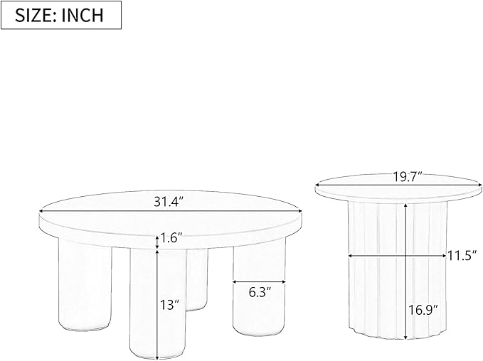 • Flexible and Modular: The two tables—one large and one small—can be used separately or stacked together, offering flexibility for both small spaces and open layouts. The well-balanced design enhances the flow of your living room while maintaining ample under-table clearance