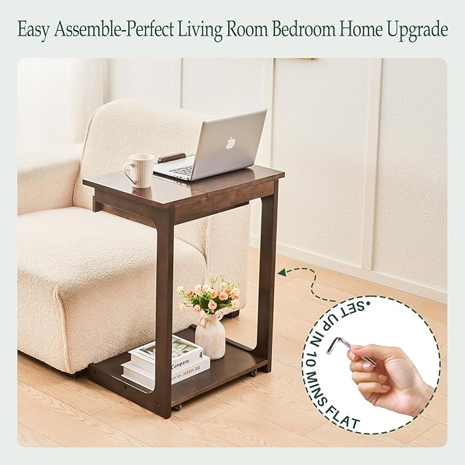 • Smart Functional Table: 360° Wheeled side table glides chair side to bedside. Tilt top 15° 25° 35° 45° for ergonomic laptop work, reading, comfortable dining, binge watching as a portable TV tray. Ideal small coffee table for snacks, drinks and essentials